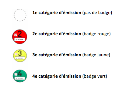 Il existe plusieurs types de vignette (verte, jaune, rouge et aucune) et une vignette vous sera attribuée en fonction de la directive CEE/EC sur l’émission de polluants mentionnée dans votre document d’immatriculation.